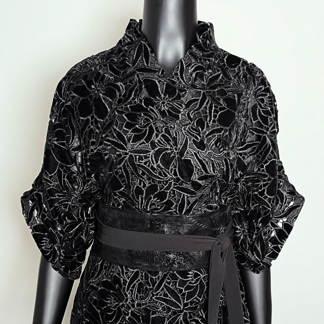Black Velvet Guipure Lace Swing Coat - One Of A Kind