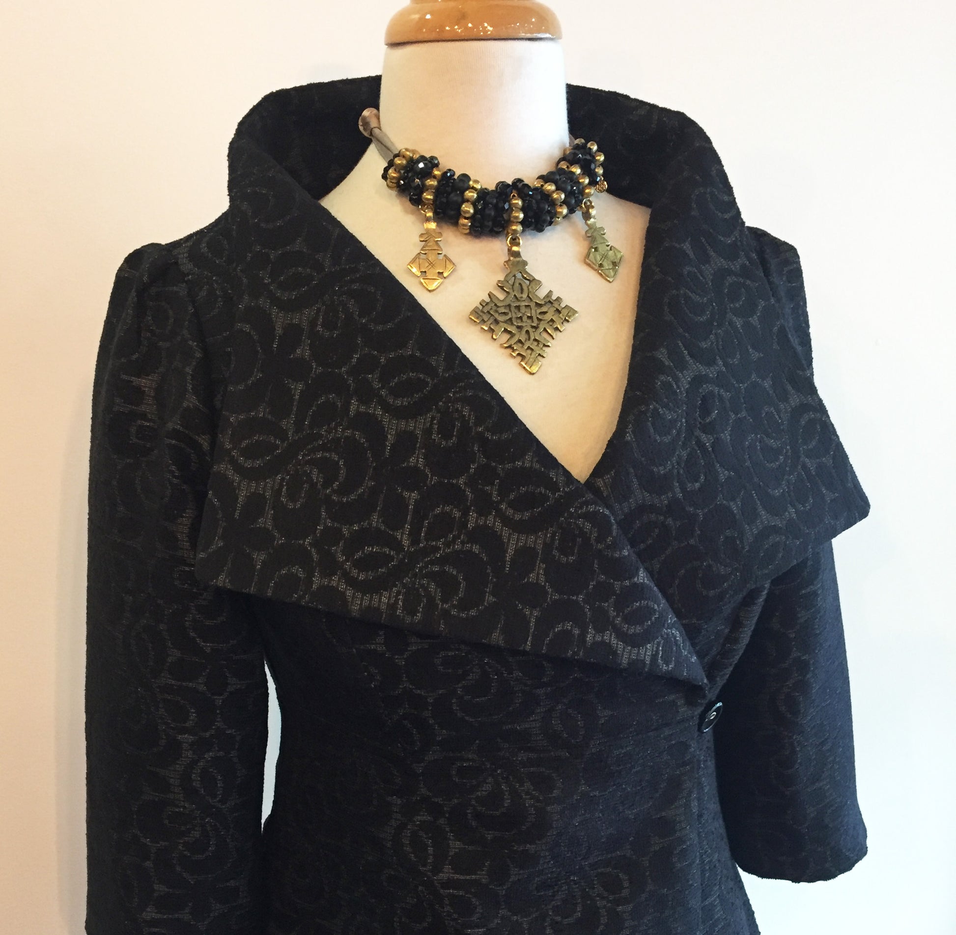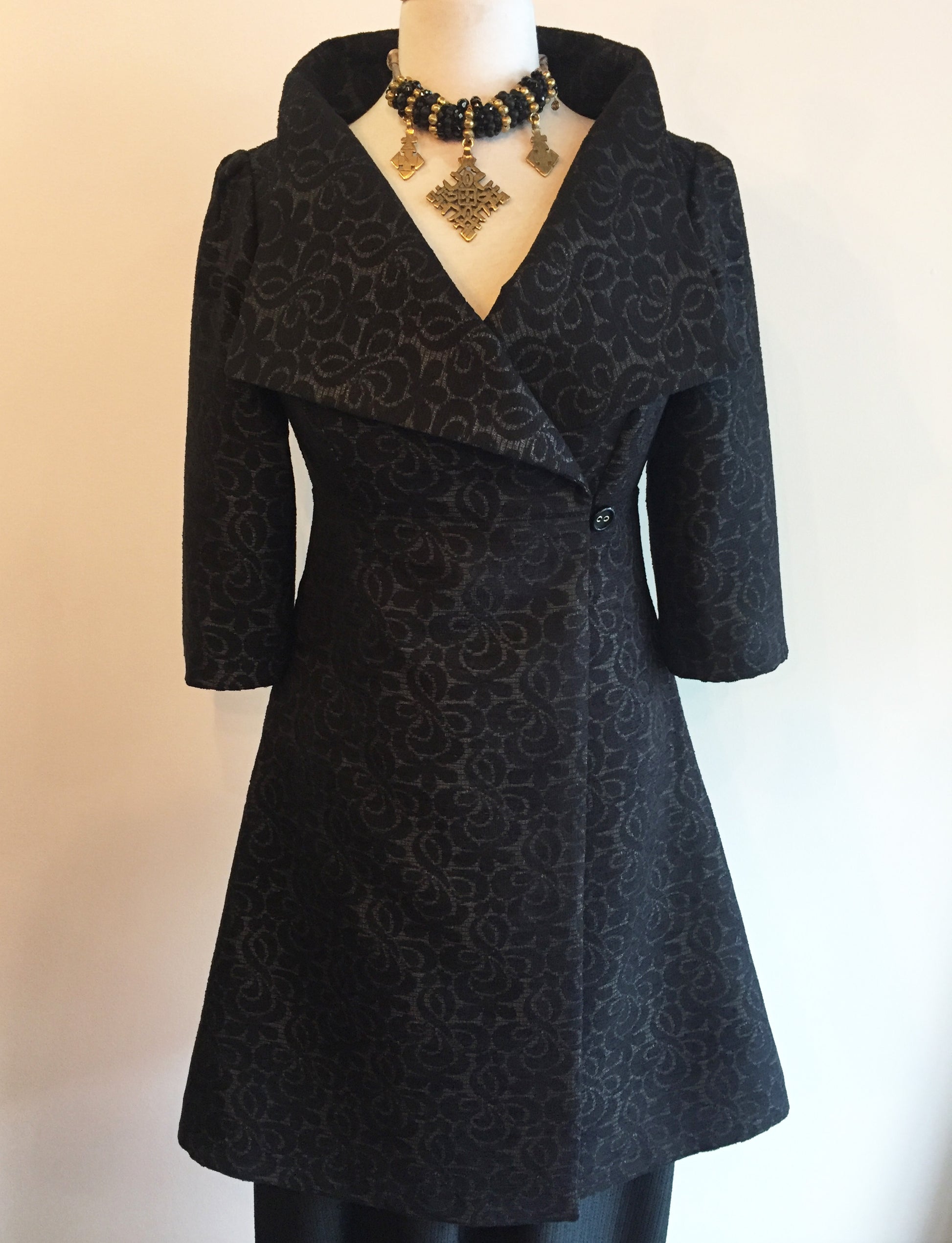 - Styled here with Eloise Nikita Coat Dress in black/grey jacquard