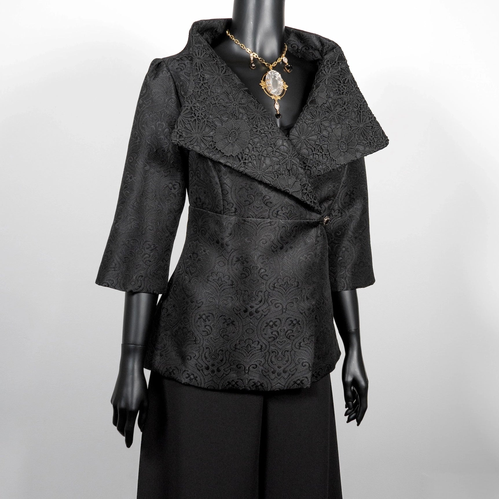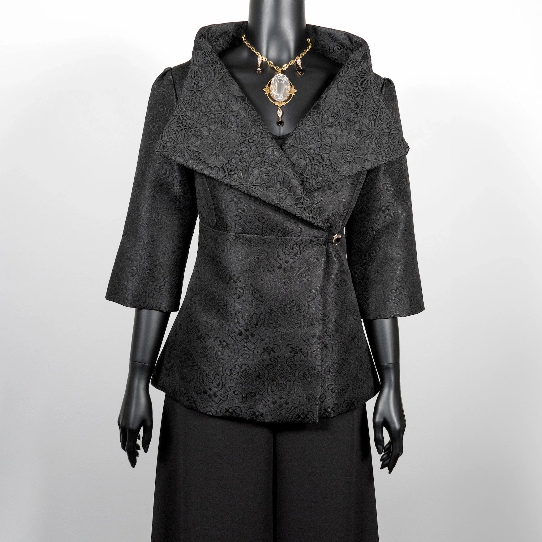 1 x Clasique Jacket in black jacquard with black lace collar.