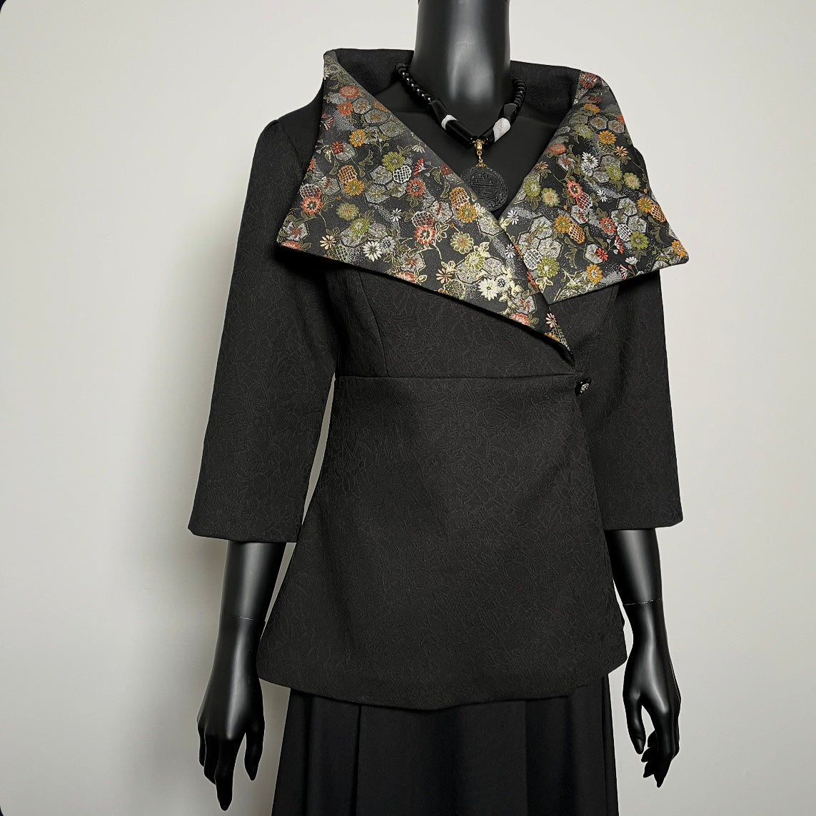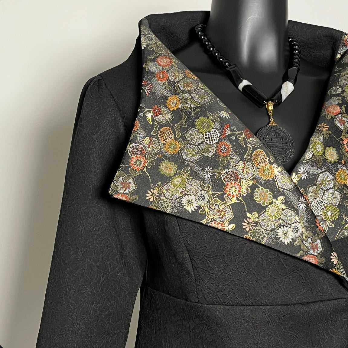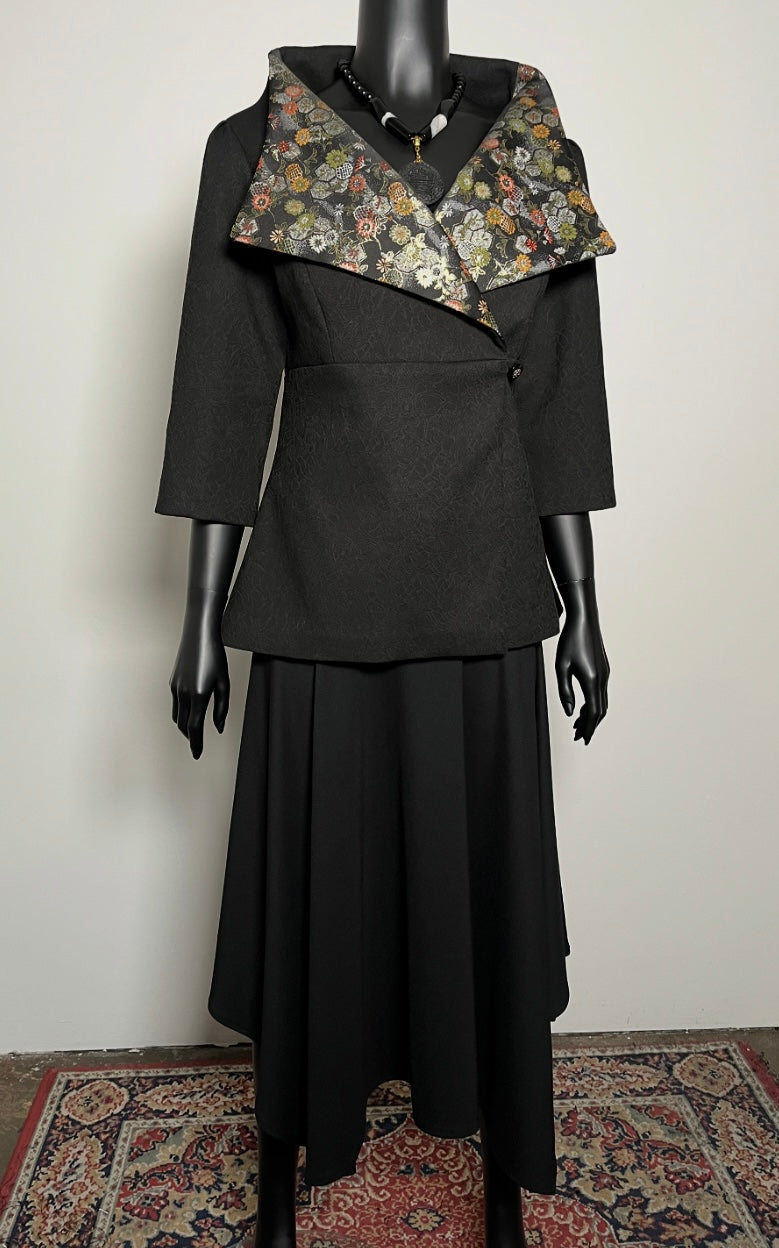 Clasique Jacket - Matte Black Jacquard with Japanese Floral Brocade.
