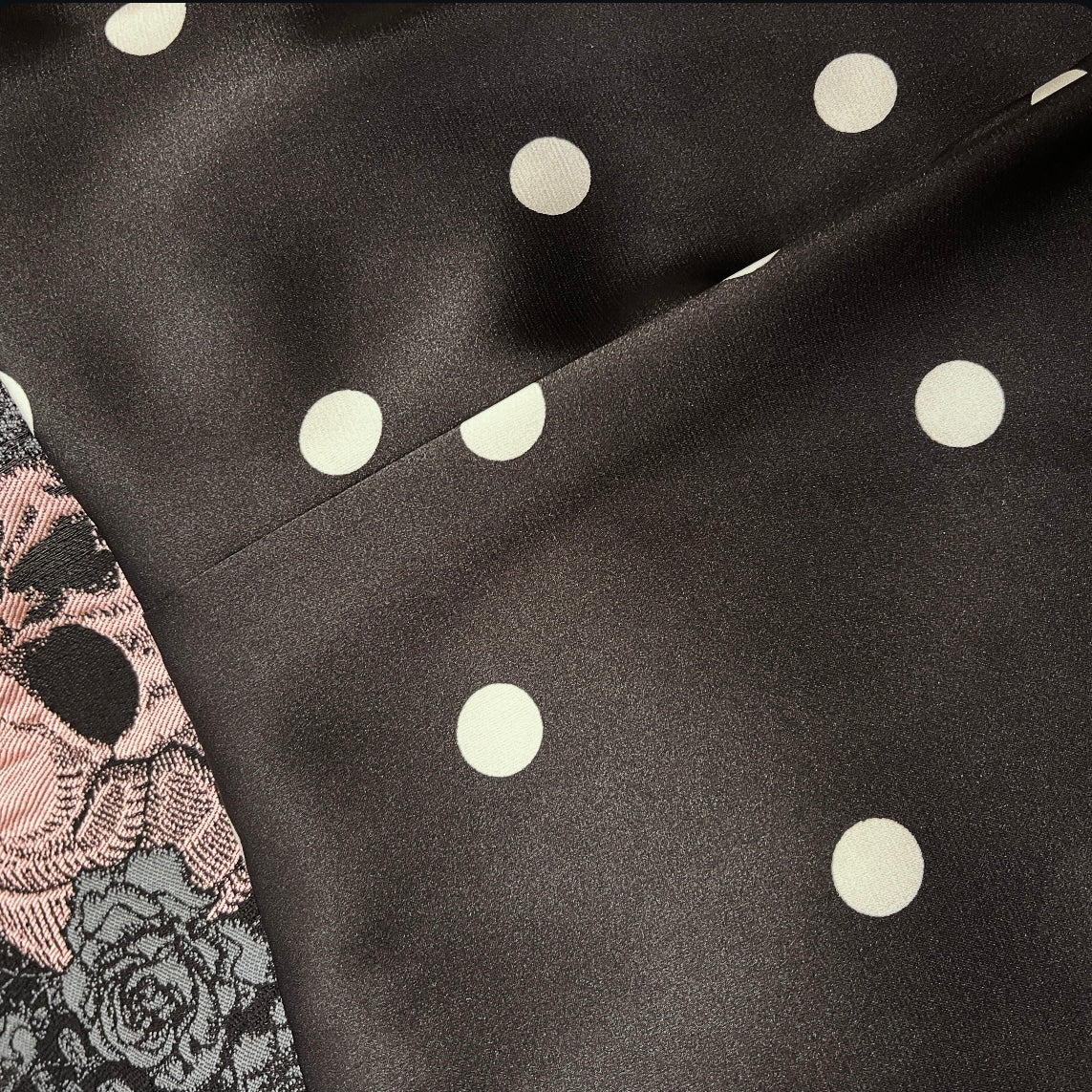 Impeccably tailored and holding structure and form, the sculptural shaping of the Eloise Clasique Jacket reflects a timeless statement piece to love and cherish for many years to come. The Clasique is a double breasted jacket with soft empire line, flattering waistline shaping and striking high collar and wide lapel. The striking jacquard fabric in skulls and roses exudes a demanding presence that demands attention. An exquisite fabric with body and drape. Jewel length (3/4 length) fitted sleeve with soft pleat detail. It's the perfect piece to add a bold statement to your everyday.