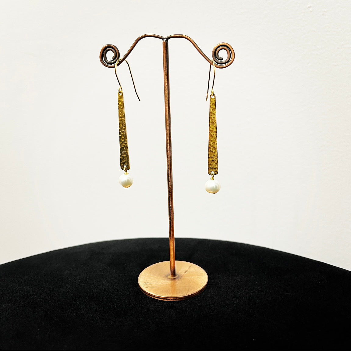 The timeless combination of brass and freshwater pearl. The Chalice earring features hand cut brass components delicately finished with a single freshwater pearl. An eye-catching addition to any jewellery collection...