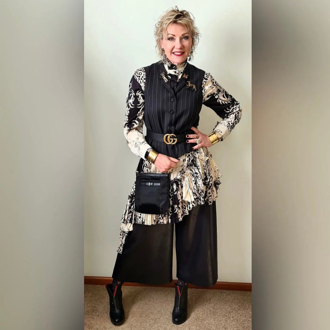 - Pic one: model wears her own accessories Pic two: Teamed here with Eloise Nikita Vest, silky soft bamboo cami, statement brooch and Lucky Charm Shoulder bag.