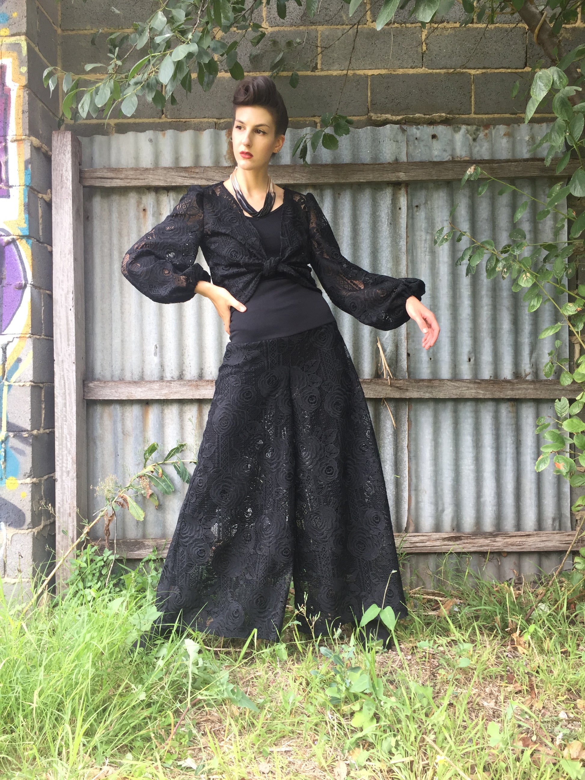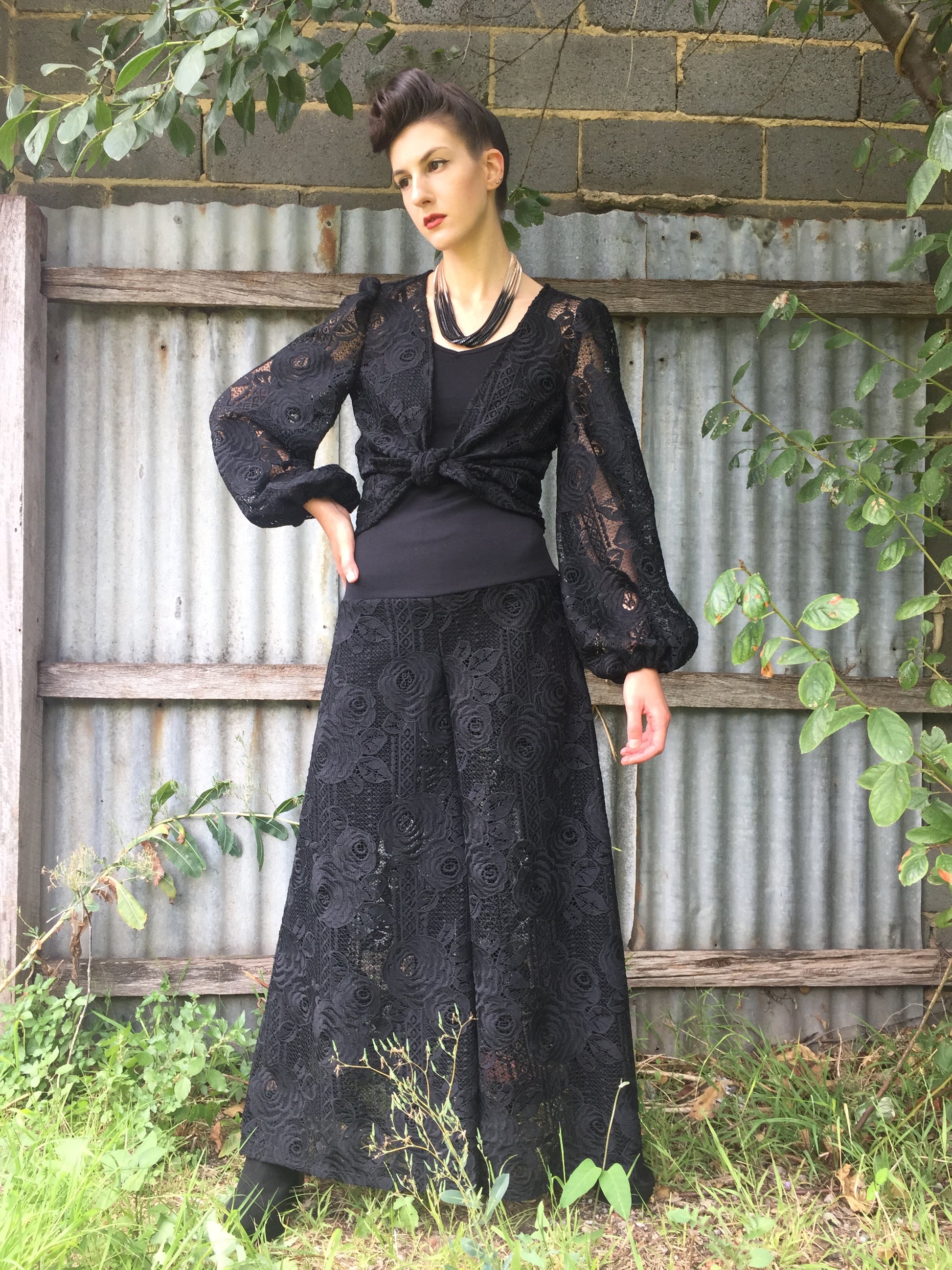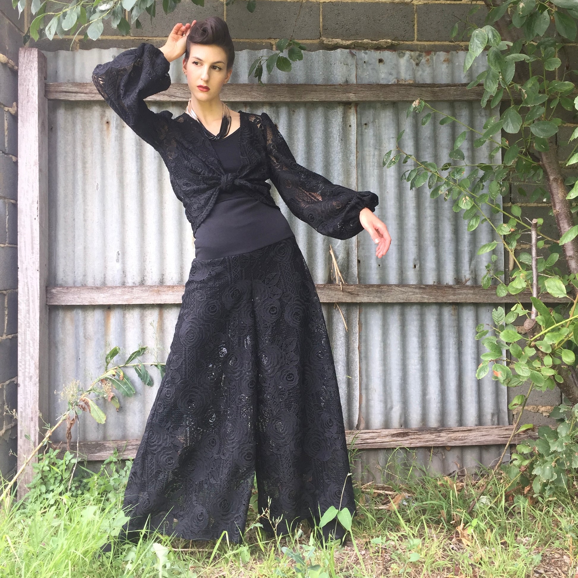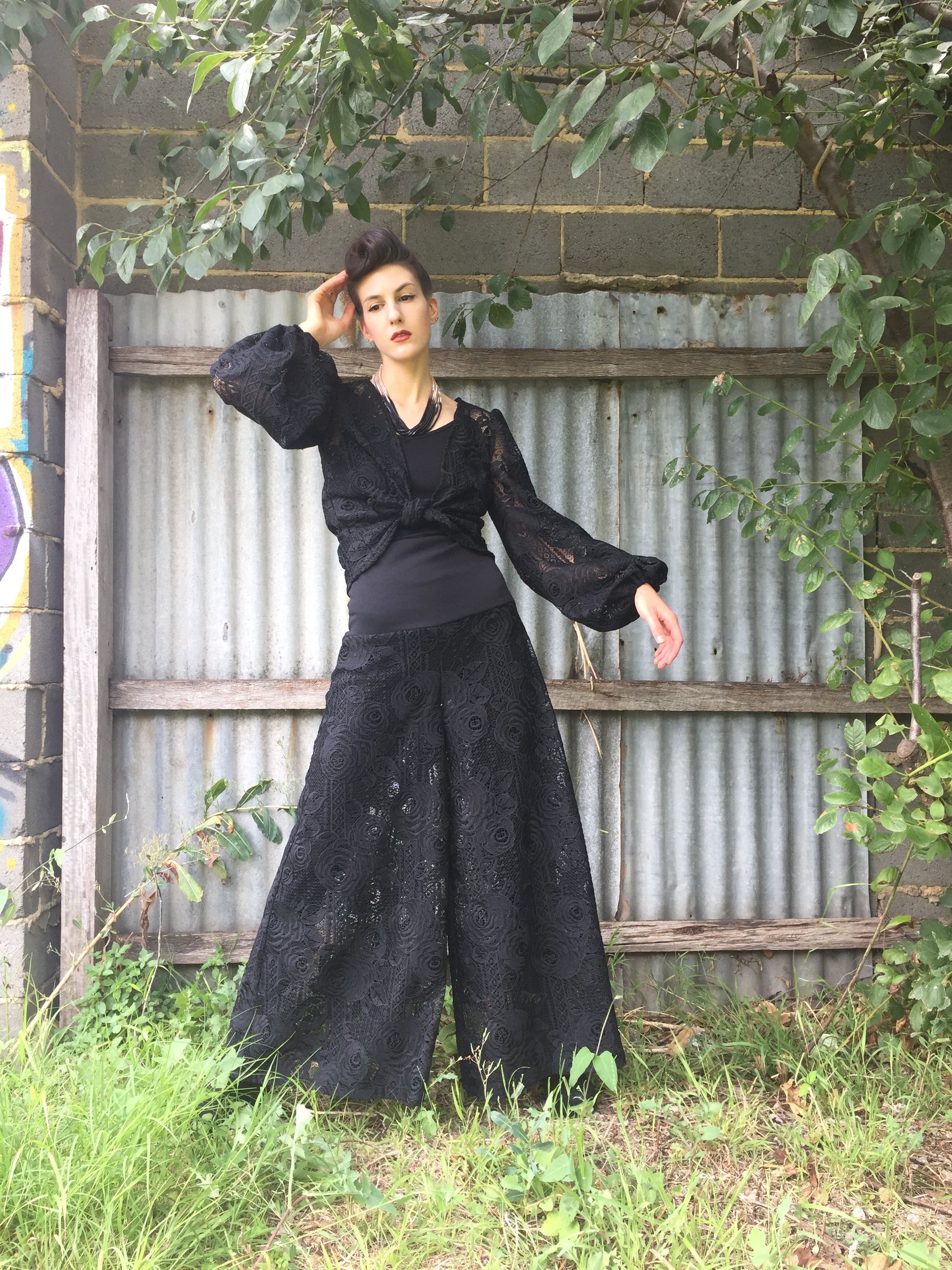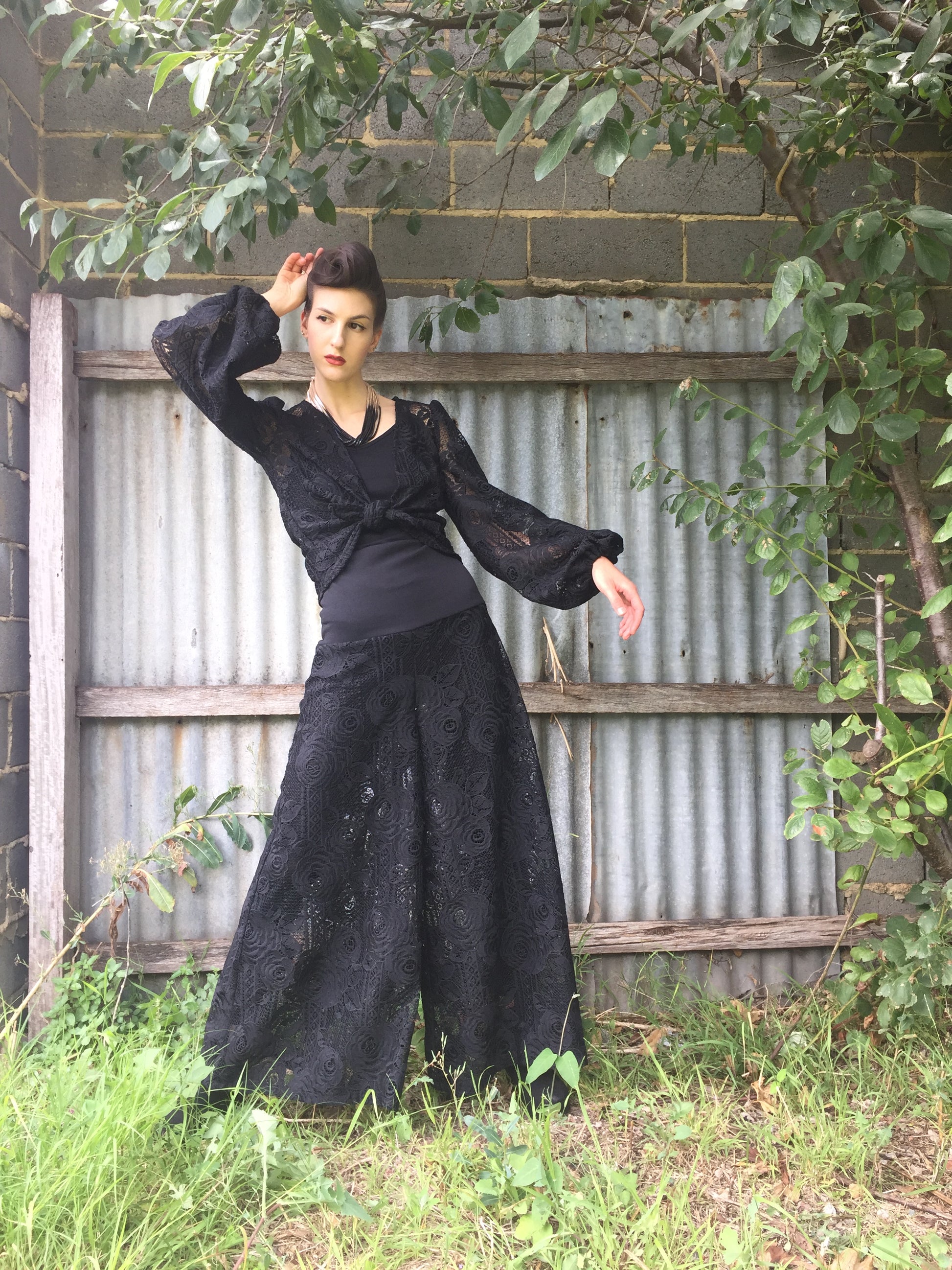 - Please note that this is a sheer lace. Model wears an opaque stocking underneath. This pant is also suitable to be worn over Eloise Flare Cut Pant in soft draping linen/viscose in black as a pant lining. Also suitable to be worn over a contrast colour pant for an alternate look.