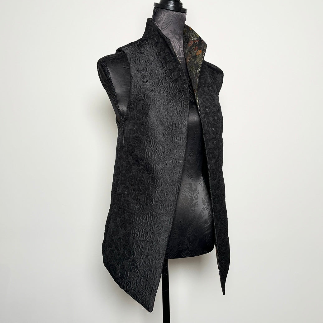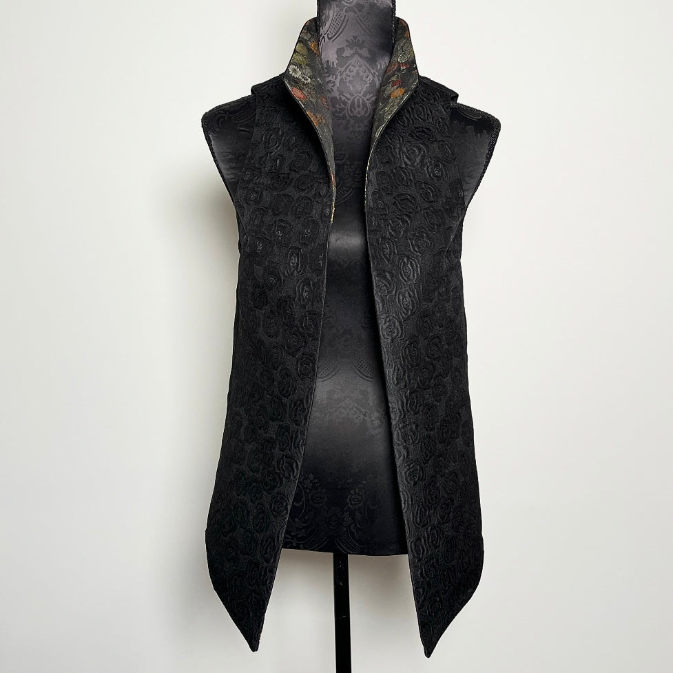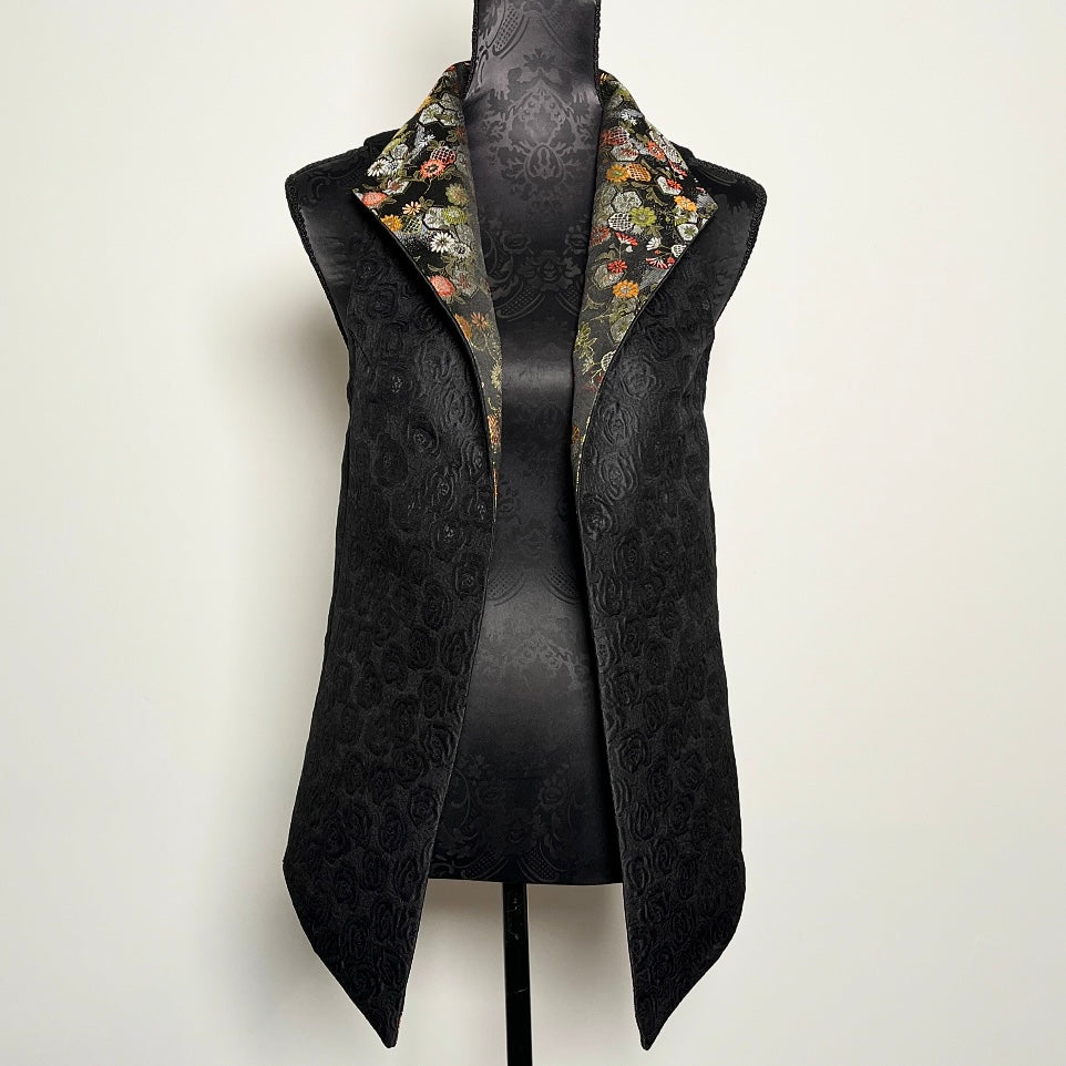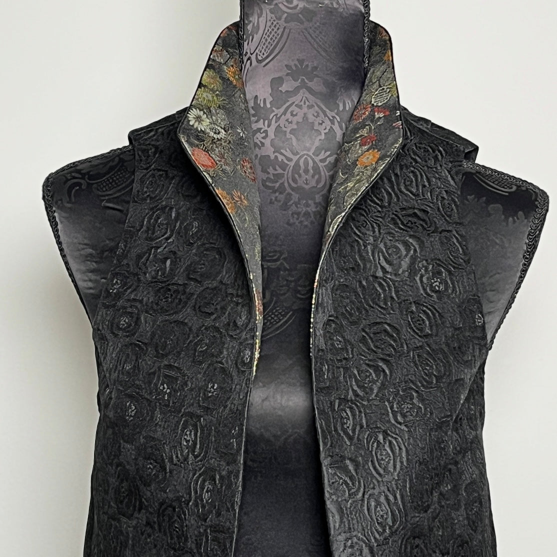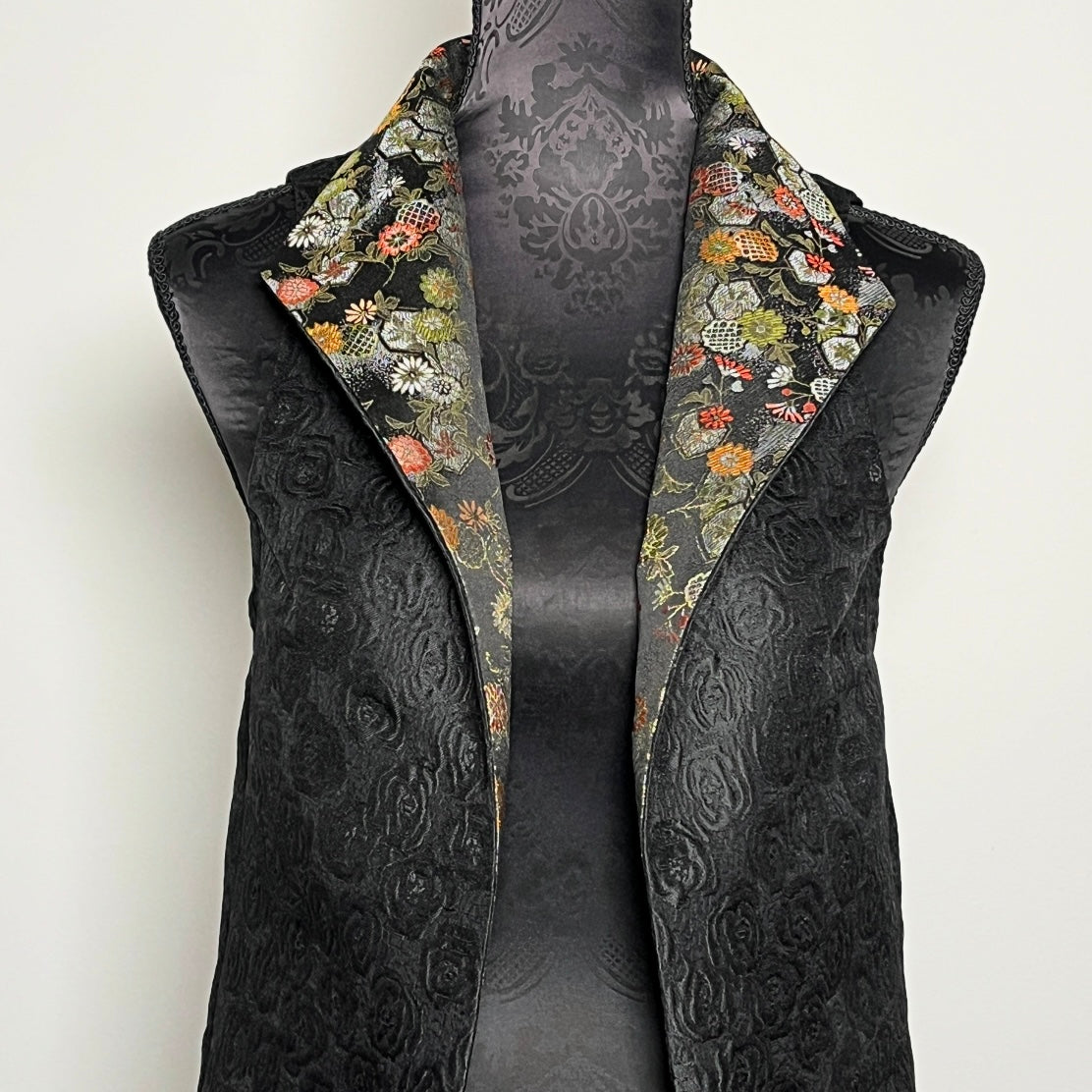 Natalia Vest - Black Jaquard with Japanese Floral Brocade