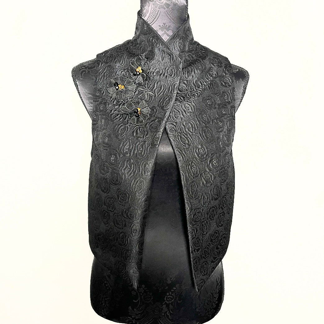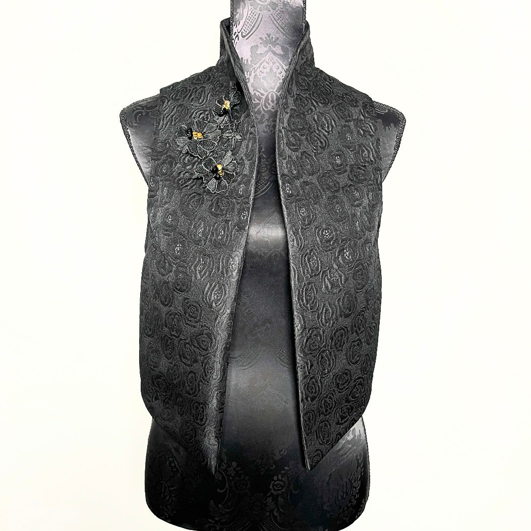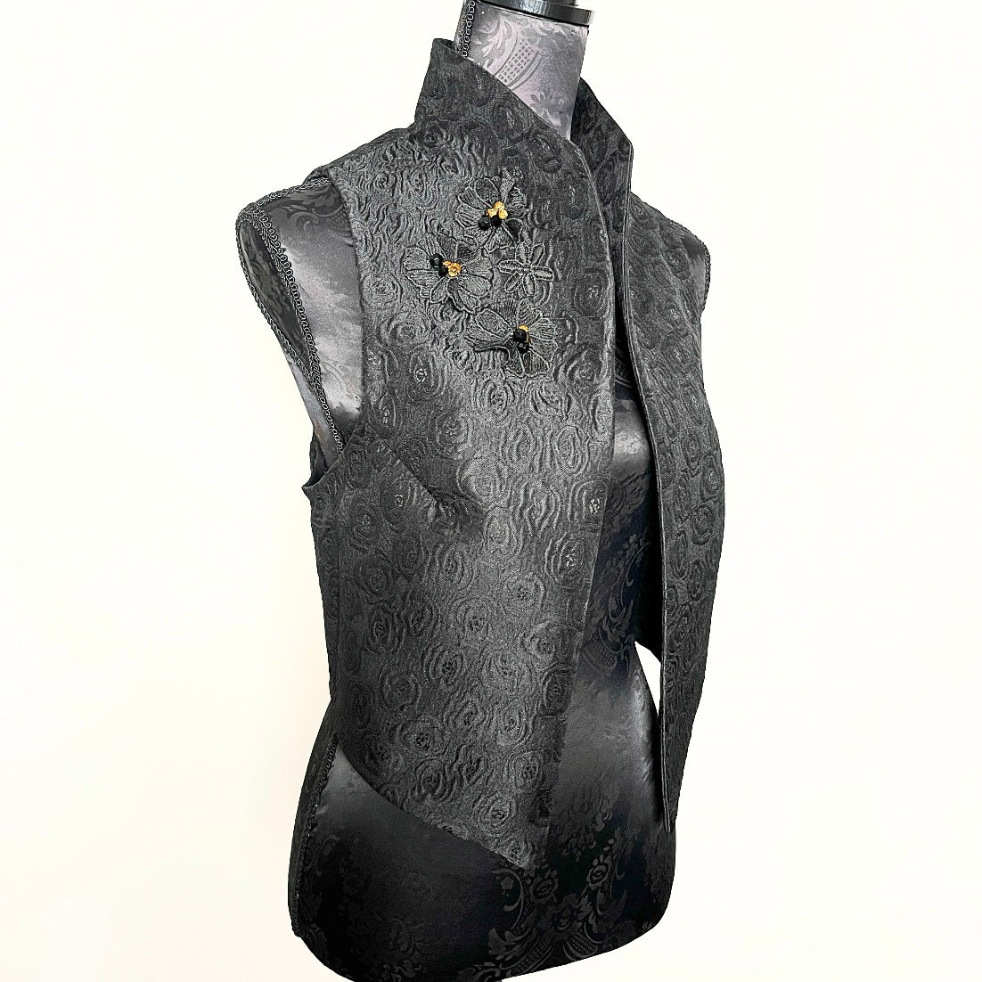 Nikita Vest - Black floral jacquard with beaded lace motifs - One Of A Kind