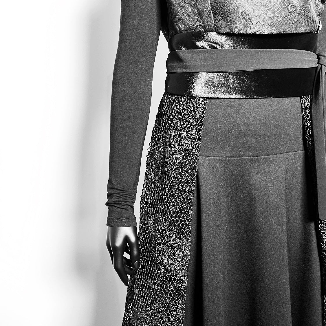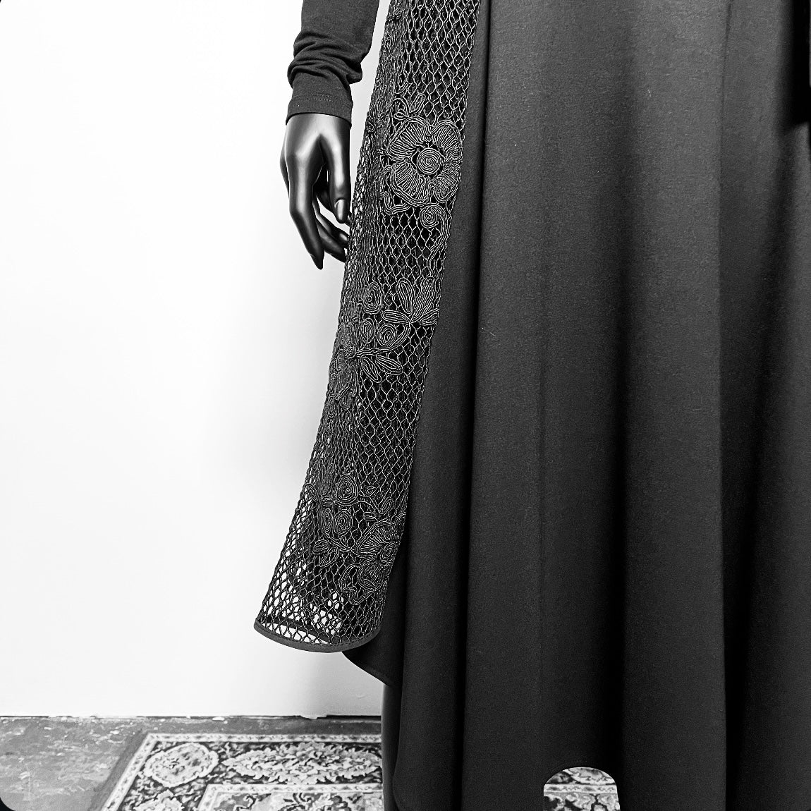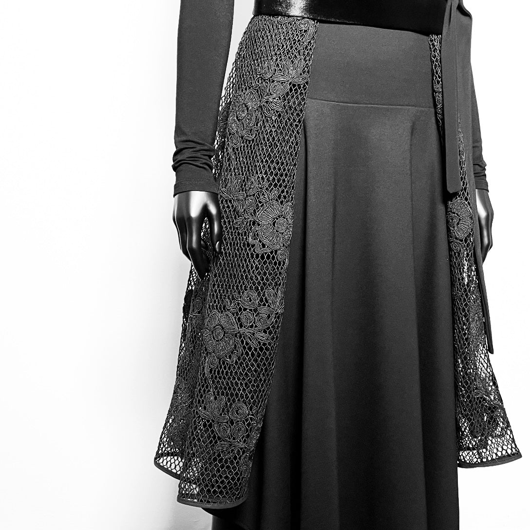 One Of A Kind Longline Vest And Obi Belt Set - Black Jacquard And Corded Mesh Lace