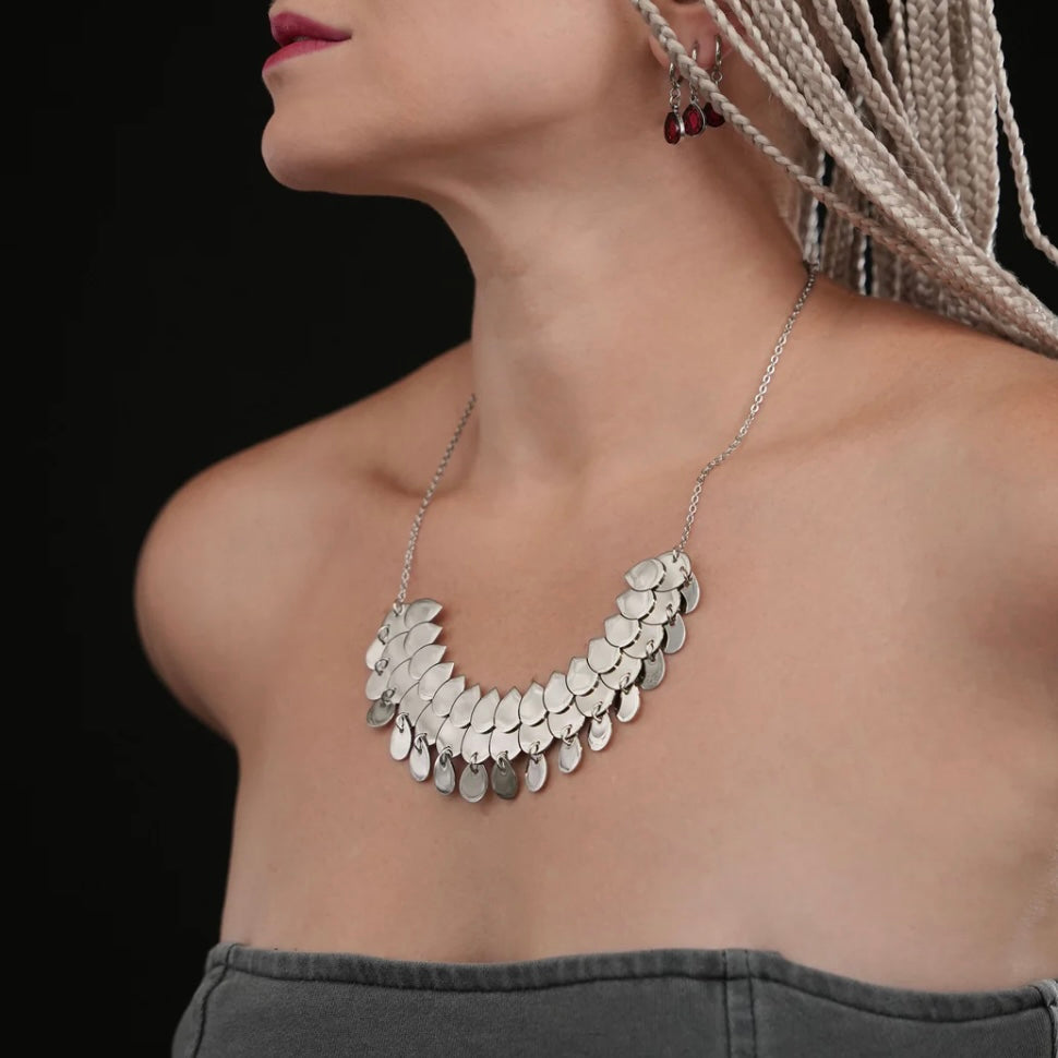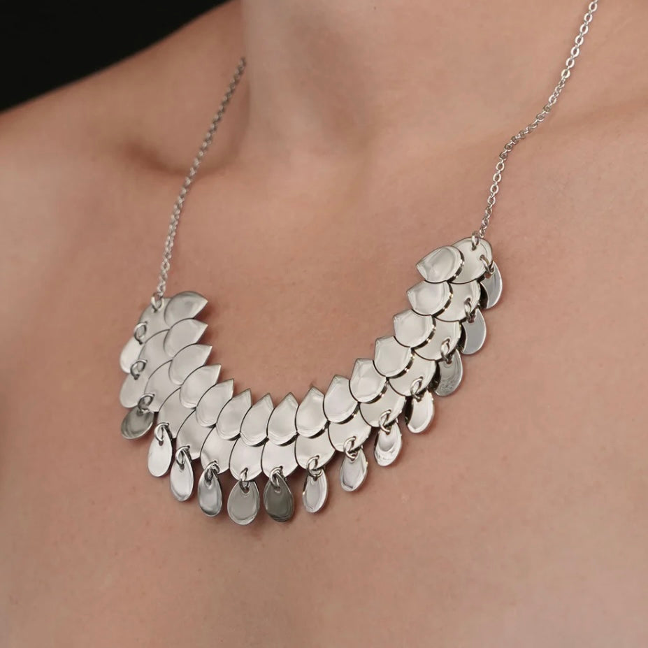 An opulent statement piece complete with 15 shimmering droplets to bring movement that catches the light. This glamorous, luxurious necklace is sure to add a special drama to many an outfit.