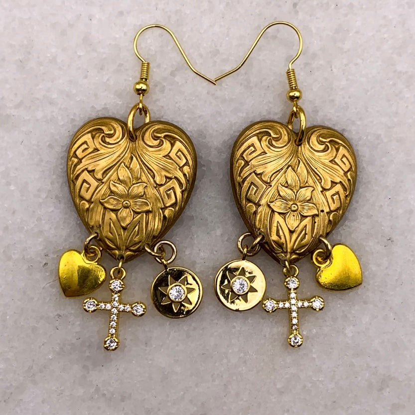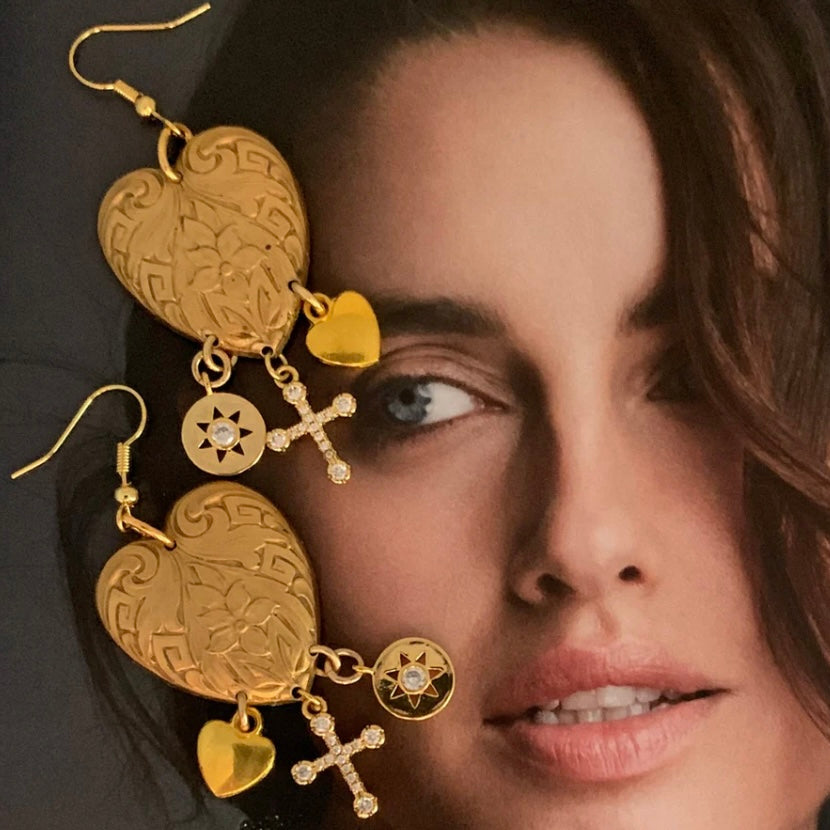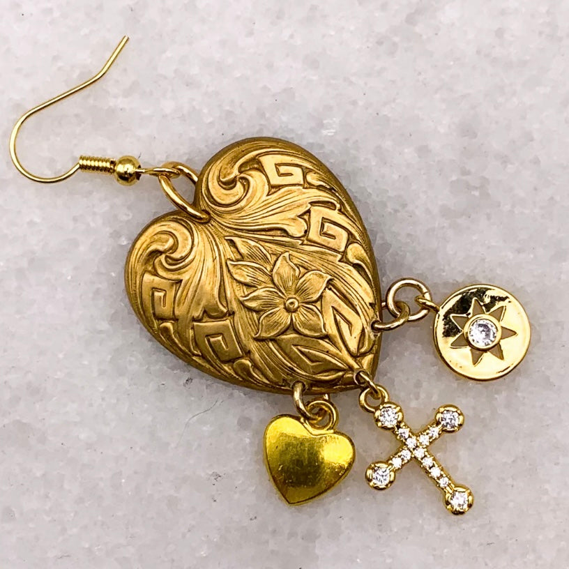 Rare Art Deco vintage Hearts embellished with gold filled charms to create interest and movement. Combining rare gems and vintage components, Australian designer Ghost and Lola create contemporary jewellery, offering glamorous and exquisitely detailed hand crafted limited edition pieces.