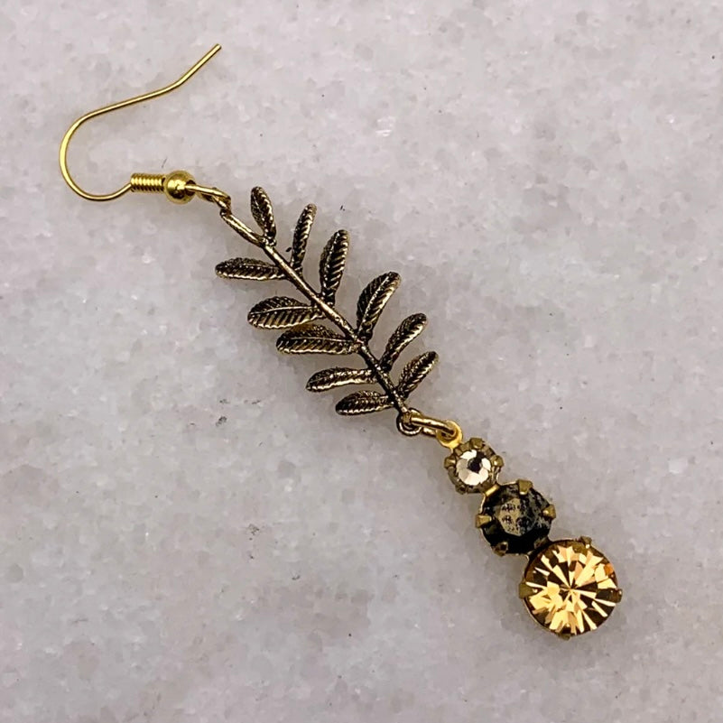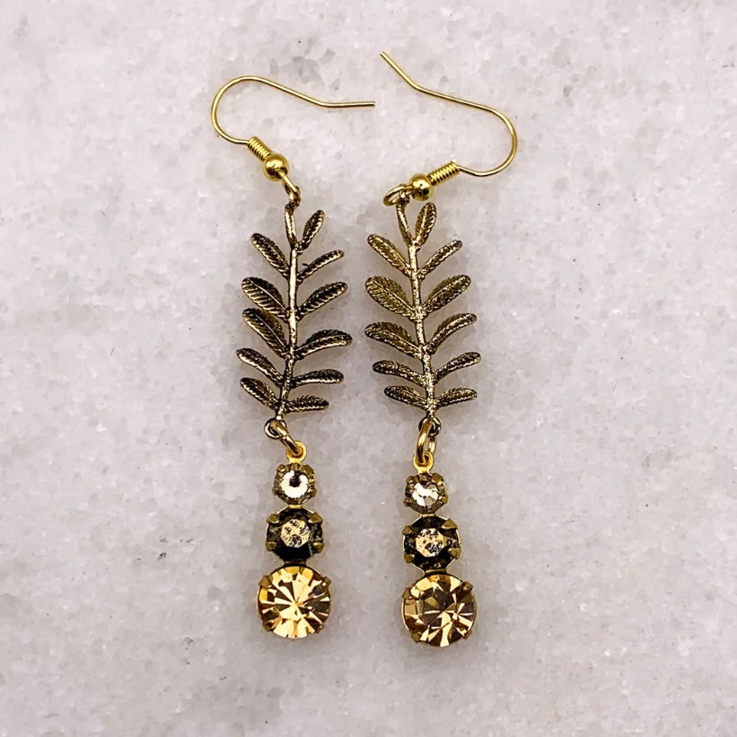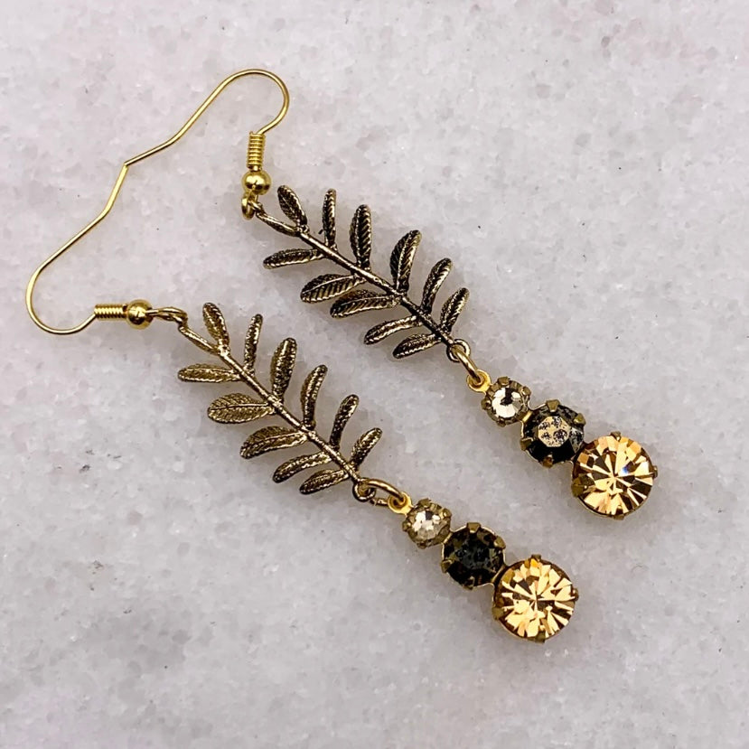 Tequilla Sunrise Earrings are a stunning drop earring that catch the light and movement within the gold leaf and vintage cut crystal drops. Combining rare gems and vintage components, Australian designer Ghost and Lola create contemporary jewellery, offering glamorous and exquisitely detailed hand crafted limited edition pieces.